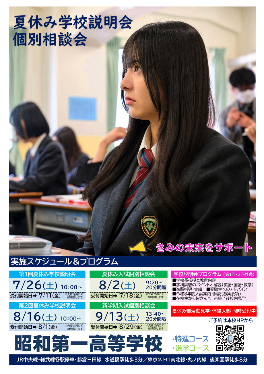 2025年夏休み学校説明会及びオンライン夏休み学校説明会は、全ての日程のお申込みを終了いたしました(キャンセル発生都度のお申込みは可能です)。